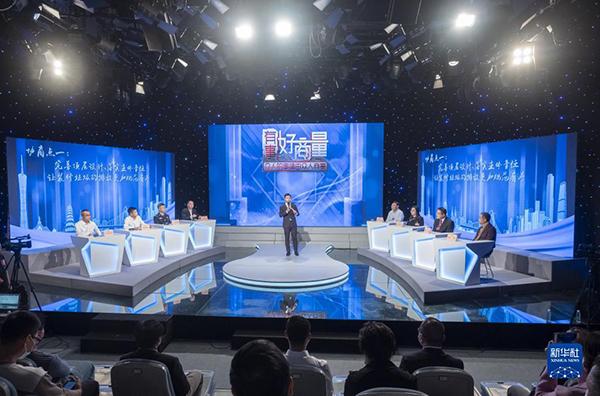 政協(xié)委員、政府部門代表、物業(yè)代表等在廣州市政協(xié)“有事好商量”民生實(shí)事協(xié)商平臺,圍繞加強(qiáng)裝修垃圾管理議題展開協(xié)商(2021年11月19日攝)。新華社發(fā)(莊小龍 攝)