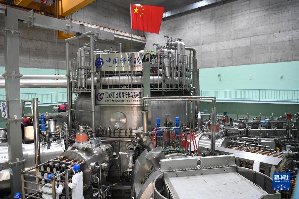 在中科院合肥物質(zhì)科學(xué)研究院,工作人員對(duì)有“人造太陽(yáng)”之稱的全超導(dǎo)托卡馬克核聚變實(shí)驗(yàn)裝置(EAST)進(jìn)行升級(jí)改造(2021年4月13日攝)。新華社記者 劉軍喜 攝