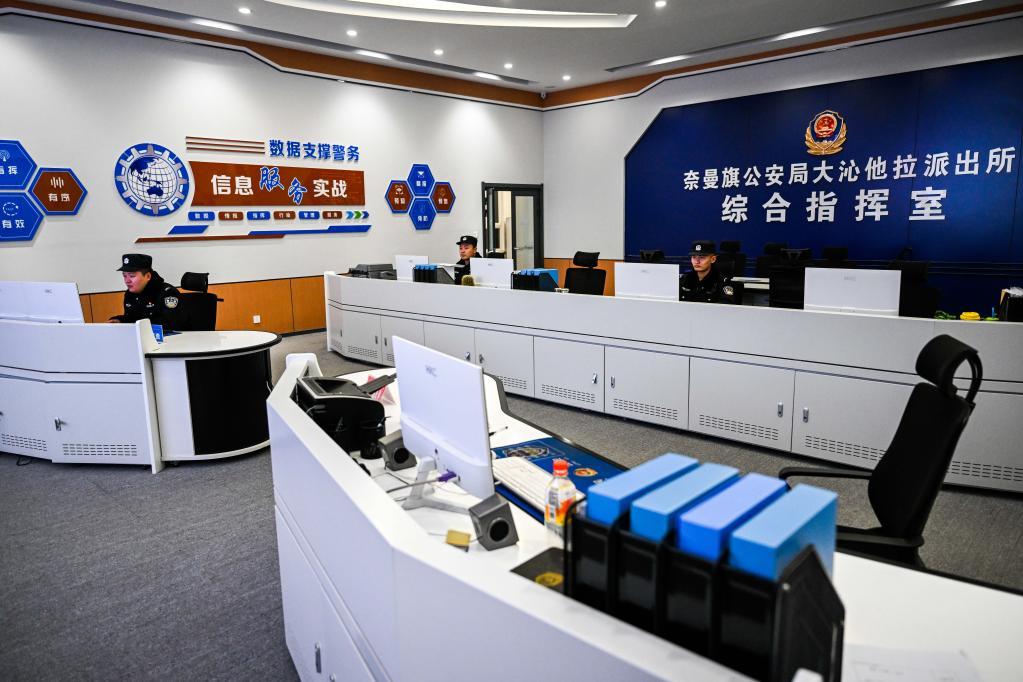 2月5日,通遼市奈曼旗公安局大沁他拉派出所民警們?cè)诰C合指揮室值班。
