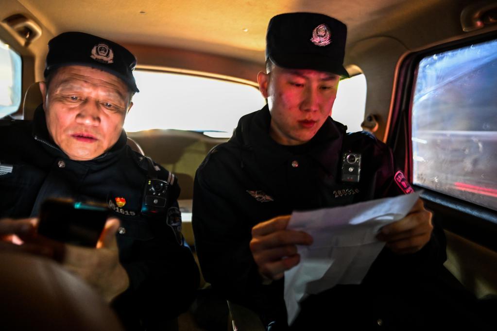 2月5日,通遼市奈曼旗公安局大沁他拉派出所民警徐萌(右)和郝新軍在出警途中核對報(bào)案人信息。