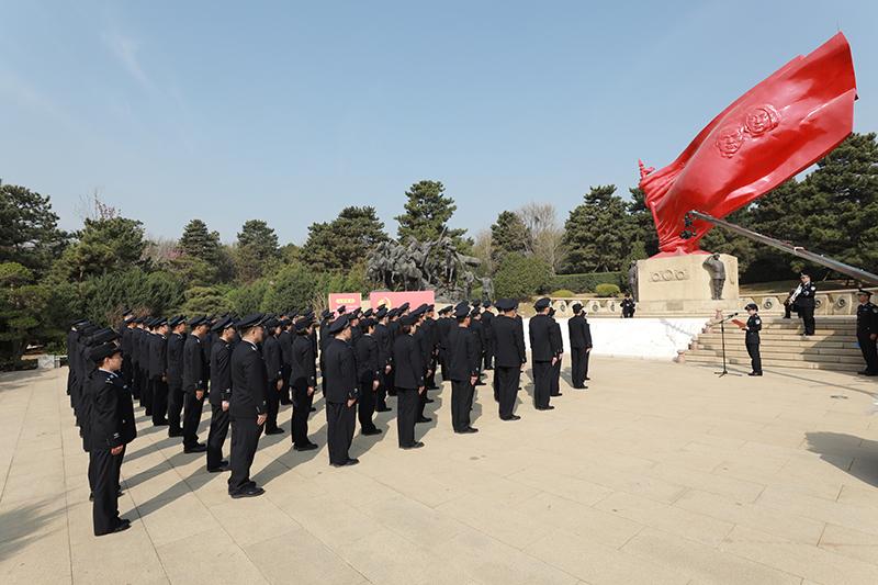 圖為北京公安民警代表開展緬懷先烈活動(dòng)。