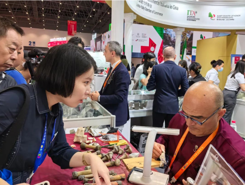 在消博會展館現(xiàn)場,法律服務(wù)團(tuán)成員吳曉嬋律師走訪了第三屆消博會主賓國意大利展館,與珠寶品牌Russo Cammei的手工貝雕工匠進(jìn)行愉快交流,向其介紹海南豐富的天然貝殼資源,并表示期待與意大利品牌碰撞出更多的合作機(jī)會和法律服務(wù)需求。