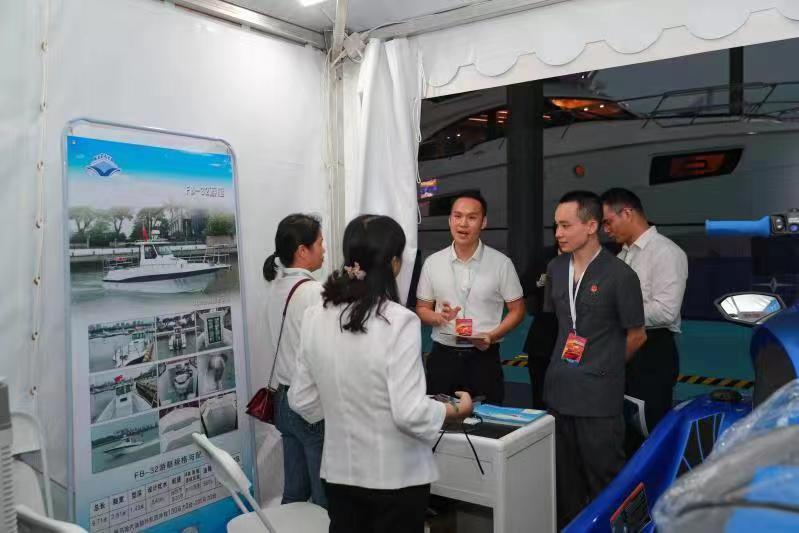 隨著海洋環(huán)保和綠色低碳出行理念日漸深入人心,新能源游艇已成為業(yè)內最具發(fā)展?jié)摿Φ姆较蛑?。在杰特賽特海洋公司展臺,??诤J路ㄔ毫私獾皆摴緦⒂诮衲?月引入國內第一艘純電游艇,法院干警詳細了解了該艘游艇的基本情況以及純電游艇進口、船檢、入級、保險等方面的相關問題。