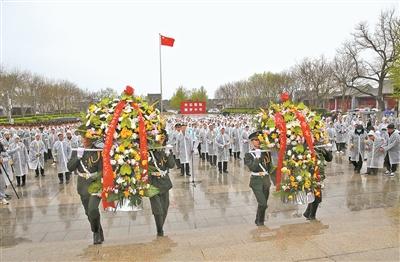 向革命烈士敬獻(xiàn)花籃。鄒占兵提供