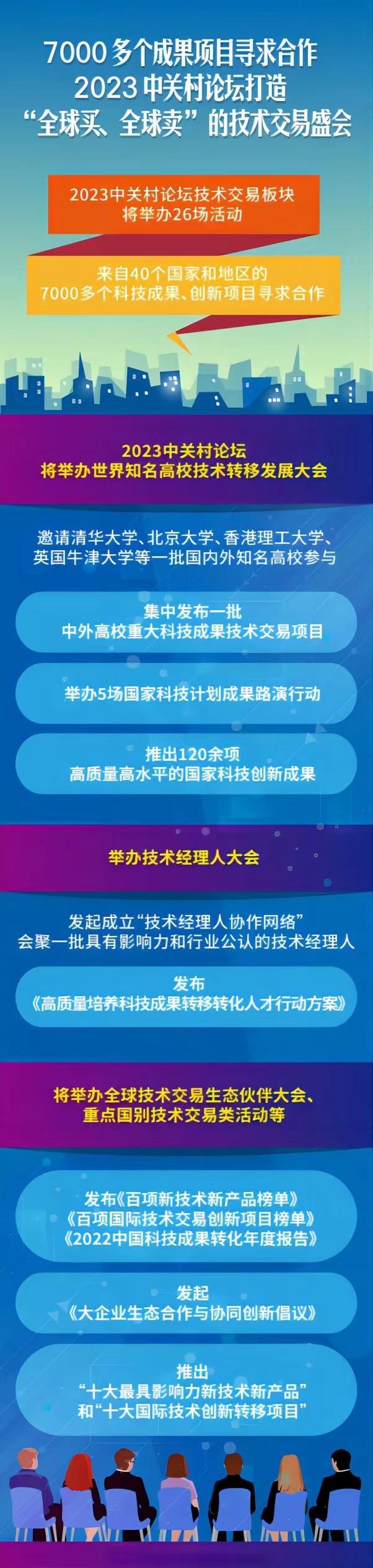 北京市副市長于英杰在15日舉行的國新辦新聞發(fā)布會上說,2023中關(guān)村論壇技術(shù)交易板塊將舉辦26場活動,來自40個國家和地區(qū)的7000多個科技成果、創(chuàng)新項目尋求合作。