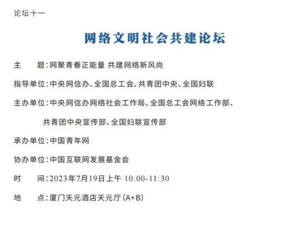 7月18日,2023年中國網(wǎng)絡(luò)文明大會即將盛大開幕。大會議程正式公布,12個分論壇也將精彩亮相。