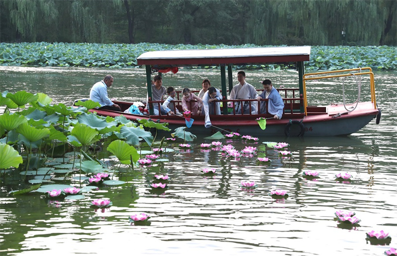 8月20日,游客放荷燈寄托對(duì)美好生活的祝愿。中國日?qǐng)?bào)記者 鄒紅 攝