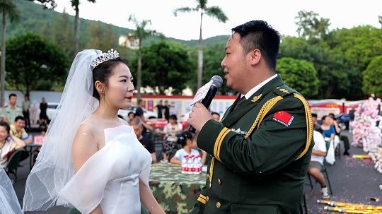 執(zhí)法員邱猛猛的愛人吳佳怡在致辭中說,這次集體婚禮將成為他們生命中最美好最深刻的記憶,同時,她也將繼續(xù)激勵自己的愛人扎根海疆,為祖國作出更大的奉獻。話語樸實無華但擲地有聲,引起現(xiàn)場所有人共鳴。