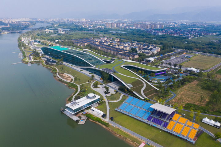 8月24日,空中俯瞰杭州富陽水上運(yùn)動中心(無人機(jī)照片)。新華社記者 徐昱 攝