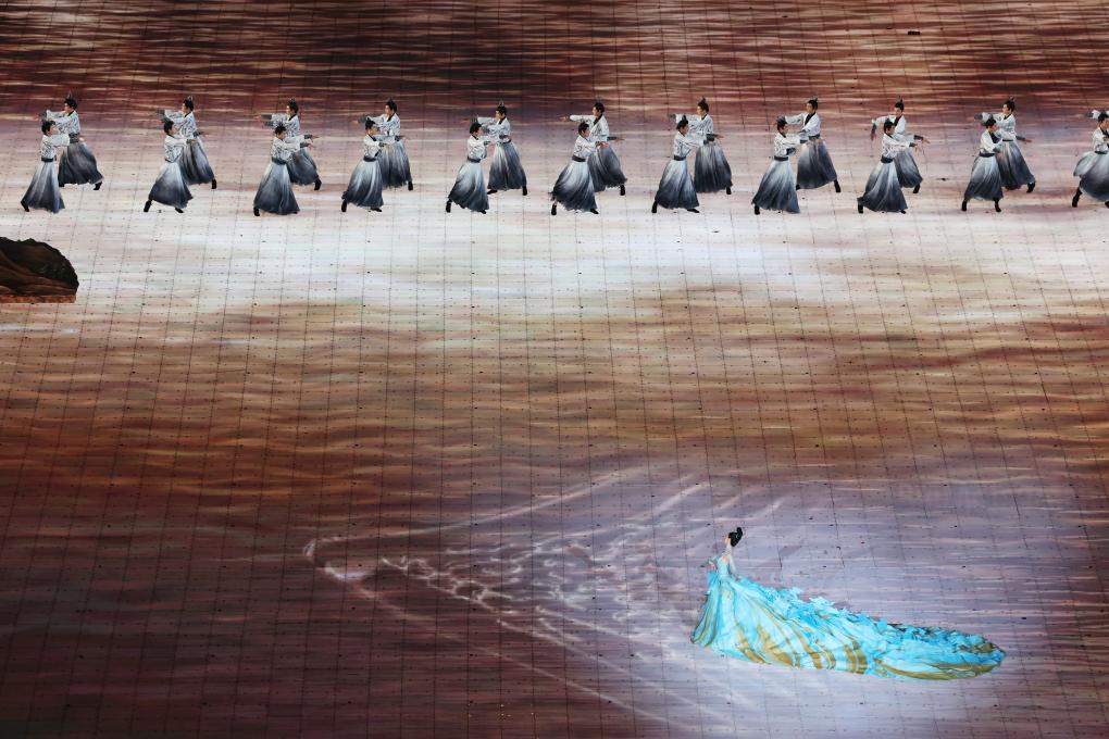 裸眼3D、AR數(shù)字穹頂、3D雙威亞、流體計(jì)算和185米寬、15米高的網(wǎng)幕等技術(shù),實(shí)現(xiàn)了立體美學(xué)和東方美學(xué)的融合,也實(shí)現(xiàn)了技術(shù)和藝術(shù)的雙向奔赴。