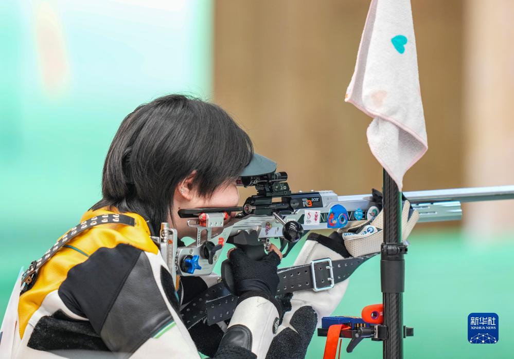 當(dāng)日,在浙江省杭州市富陽區(qū)富陽銀湖體育中心舉行的杭州亞運(yùn)會射擊女子50米步槍3種姿勢團(tuán)體賽決賽中,中國隊(duì)以總分1773分的成績?nèi)〉媒鹋疲《汝?duì)和韓國隊(duì)分獲銀牌、銅牌。