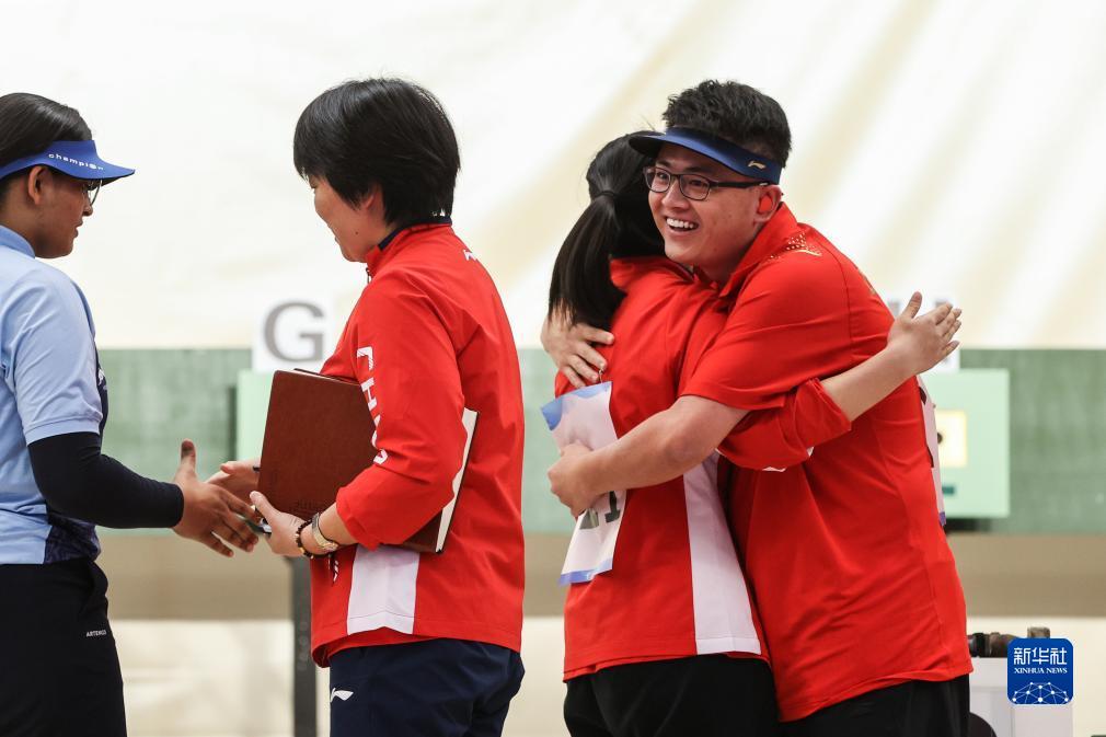 當日,在杭州富陽銀湖體育中心舉行的杭州亞運會射擊項目混合團體10米氣手槍決賽中,中國組合張博文/姜冉馨以16比14戰(zhàn)勝印度組合薩拉布喬特·辛格/迪維婭·塔迪戈爾·蘇巴拉朱,奪得冠軍。