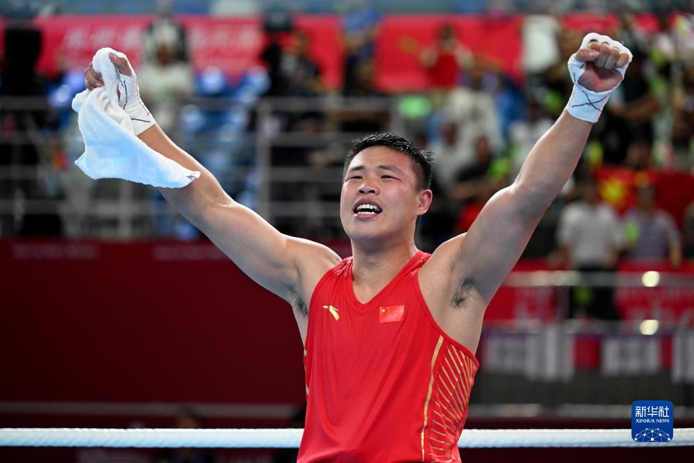 當(dāng)日,在杭州亞運(yùn)會(huì)拳擊項(xiàng)目男子92公斤級(jí)半決賽中,中國(guó)選手韓雪振戰(zhàn)勝哈薩克斯坦選手薩根德克·托甘拜,晉級(jí)決賽。