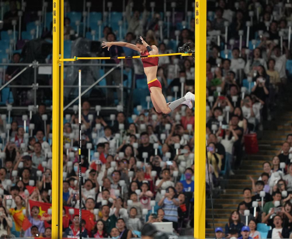 在女子撐桿跳高比賽中,亞洲紀錄保持者李玲在4米30和4米53的高度一次成功,鎖定冠軍。此后她嘗試4米63的高度同樣一次過桿,打破了由自己保持的4米60的賽會紀錄。隨后李玲沖擊自己保持的4米72的亞洲紀錄,但三次均未能越過4米73的高度。日本選手諸田實咲獲得亞軍,另一位中國選手牛春格獲得季軍。