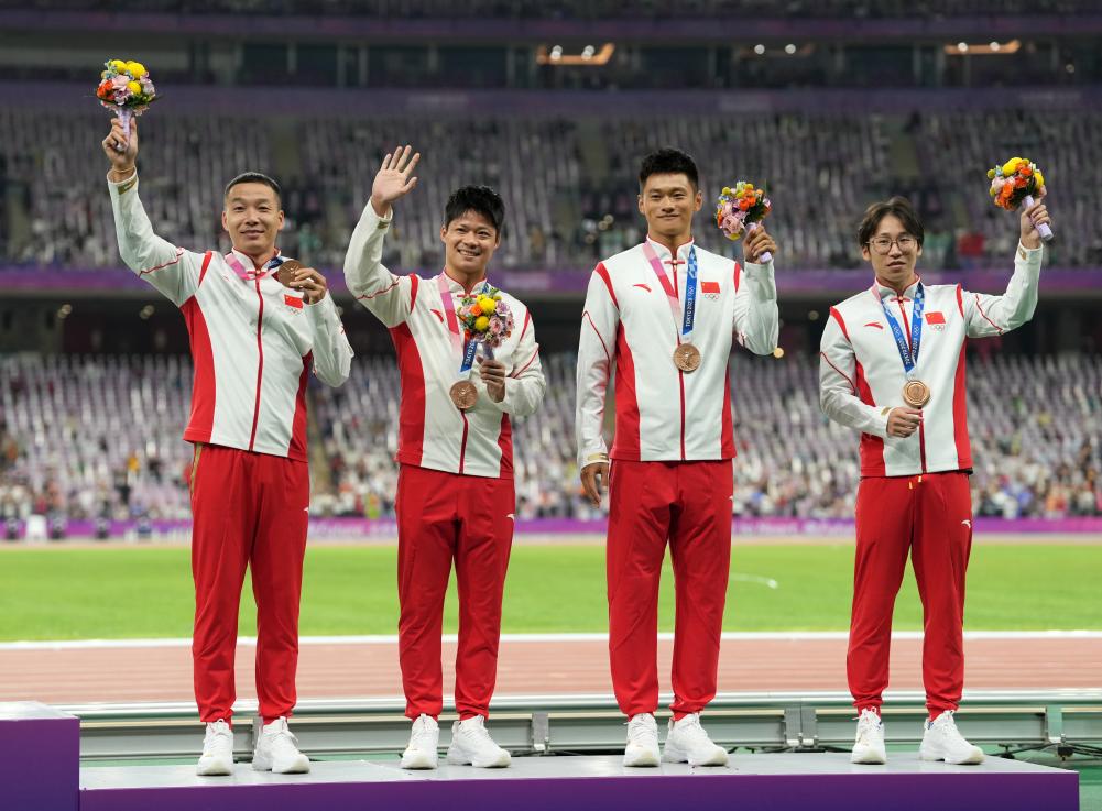 謝震業(yè)領(lǐng)銜的男子4X100米接力隊正處在新老交替階段,隊伍原本是抱著保三沖金的期望來到亞運(yùn)會的。