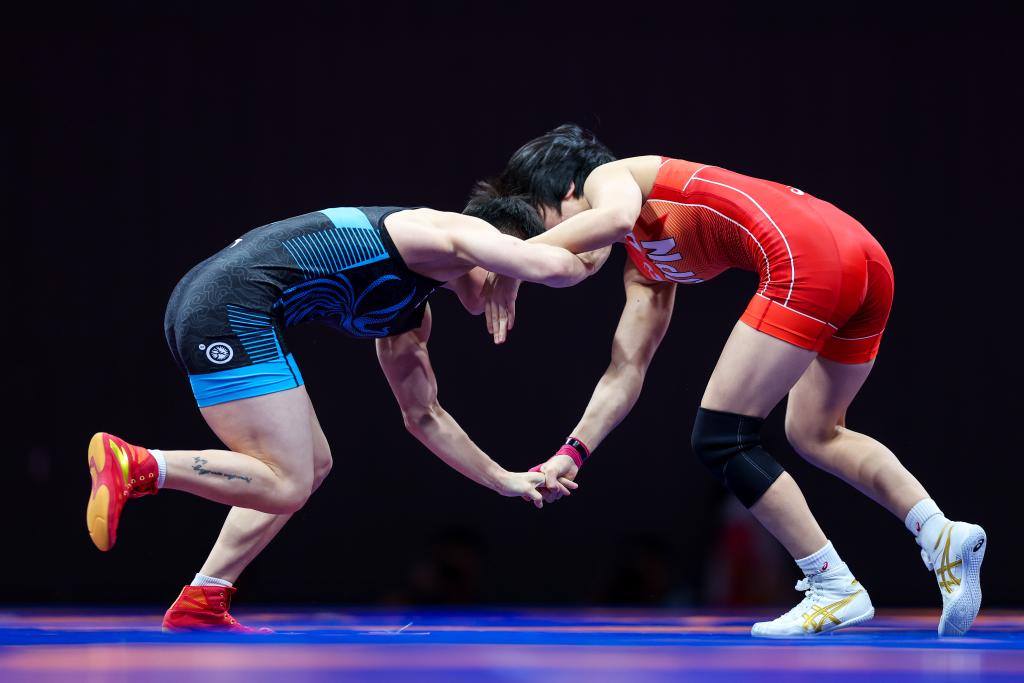 57公斤級比賽中,20歲的中國小將洪可新開局表現(xiàn)搶眼,接連兩場雙肩著地勝利先后速勝柬埔寨選手和哈薩克斯坦選手。但在半決賽她不敵4年未在國際賽場現(xiàn)身的朝鮮選手鄭忍純,之后在銅牌爭奪賽以技術優(yōu)勢擊敗了蒙古國選手達瓦奇梅格。2022年世錦賽該級別冠軍、日本選手櫻井津久美在決賽中上演大逆轉(zhuǎn)戰(zhàn)勝鄭忍純奪金。