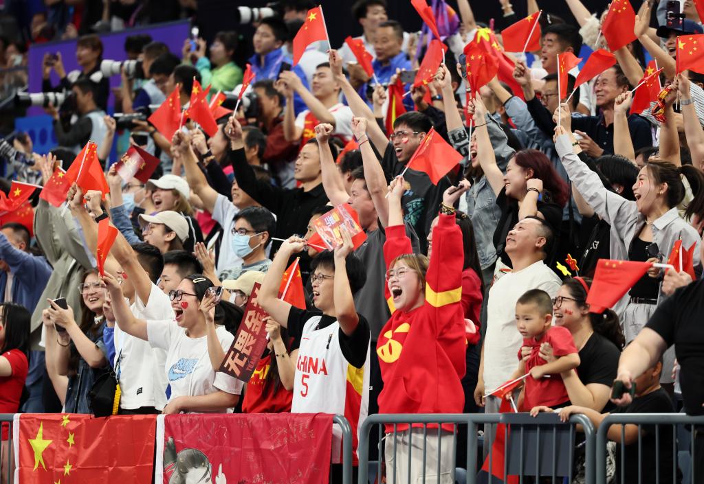 杭州亞運(yùn)會女籃決賽,觀眾在看臺上為中國隊(duì)加油助威。新華社記者蘭紅光攝