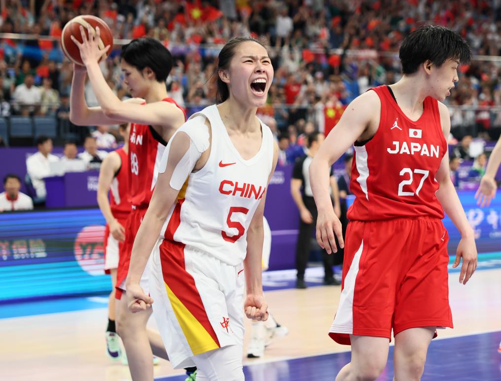 4.8秒時間里,籃球經(jīng)兩次傳導(dǎo)、三次觸地、一次碰板后鉆進(jìn)籃筐,點(diǎn)亮了中國女籃主場衛(wèi)冕的榮光。