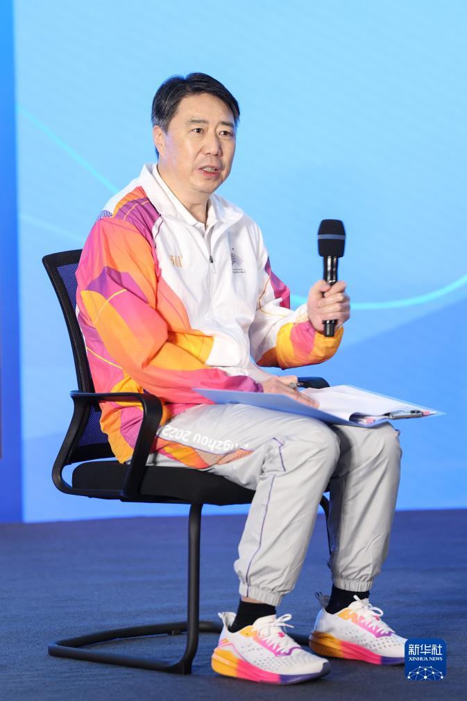 10月7日,杭州亞組委宣傳部部長(zhǎng)、杭州亞運(yùn)會(huì)主新聞發(fā)言人許德清在見(jiàn)面會(huì)現(xiàn)場(chǎng)發(fā)言。