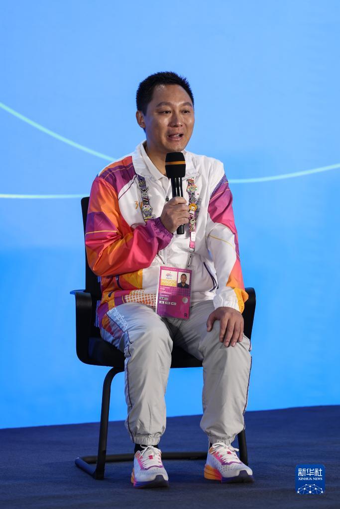 10月7日,杭州亞運(yùn)會(huì)運(yùn)動(dòng)員村餐飲主管胡傳剛在見(jiàn)面會(huì)現(xiàn)場(chǎng)發(fā)言。