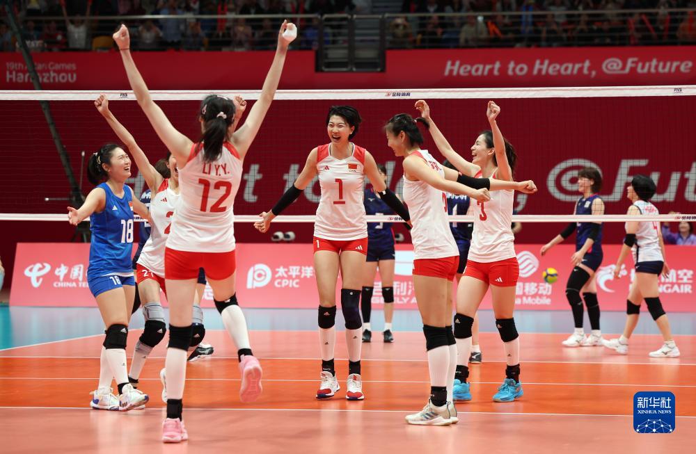 新華社杭州10月7日電(記者盧星吉、王鏡宇、殷曉圣)中國(guó)女排7日在杭州亞運(yùn)會(huì)女排決賽中以3:0擊敗日本隊(duì),以六戰(zhàn)全勝衛(wèi)冕亞運(yùn)會(huì)冠軍。這也是中國(guó)女排歷史上第九次摘得亞運(yùn)金牌。