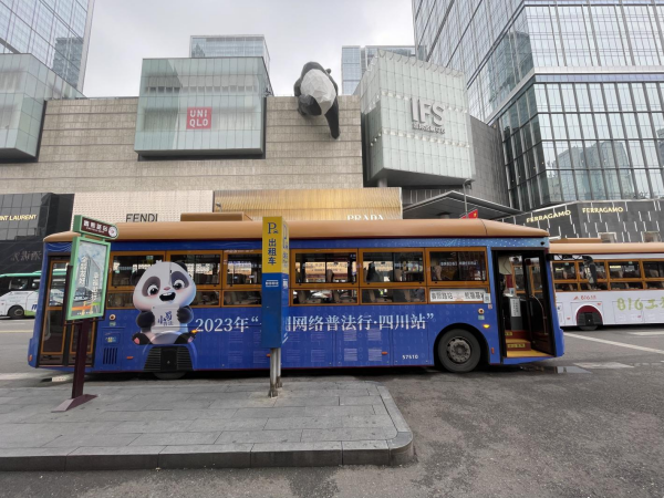 據(jù)介紹,未來(lái)一個(gè)月時(shí)間里,成都市民和來(lái)蓉游客都能在春熙路商圈的“網(wǎng)紅”地標(biāo)“熊貓爬墻”下,看到網(wǎng)絡(luò)普法主題公交。該主題公交在成都著名的“熊貓觀光線”上運(yùn)行,并往返于成都地標(biāo)春熙路以及熱門(mén)景點(diǎn)熊貓基地,途經(jīng)寬窄巷子、文殊院等人氣打卡地,公交車(chē)化身普法“宣傳員”,讓網(wǎng)絡(luò)普法宣傳融入城市交通、深入大街小巷、進(jìn)入百姓心中。