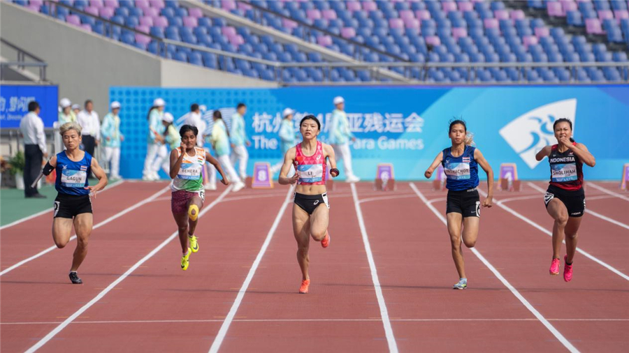 10月25日,杭州第4屆亞殘運會迎來第3個比賽日,在女子100米T47級別比賽中,中國選手李露以12秒63奪得金牌。