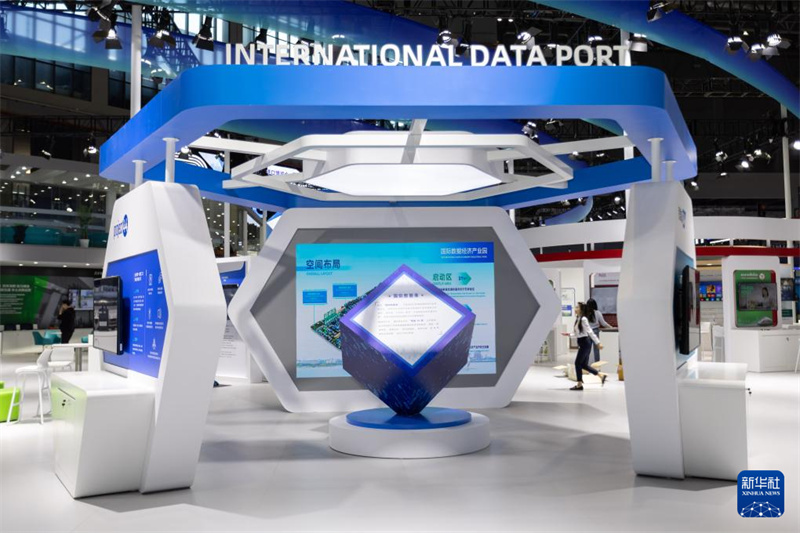 這是11月2日在技術裝備展區(qū)臨港展示區(qū)拍攝的國際數據經濟產業(yè)園展臺。