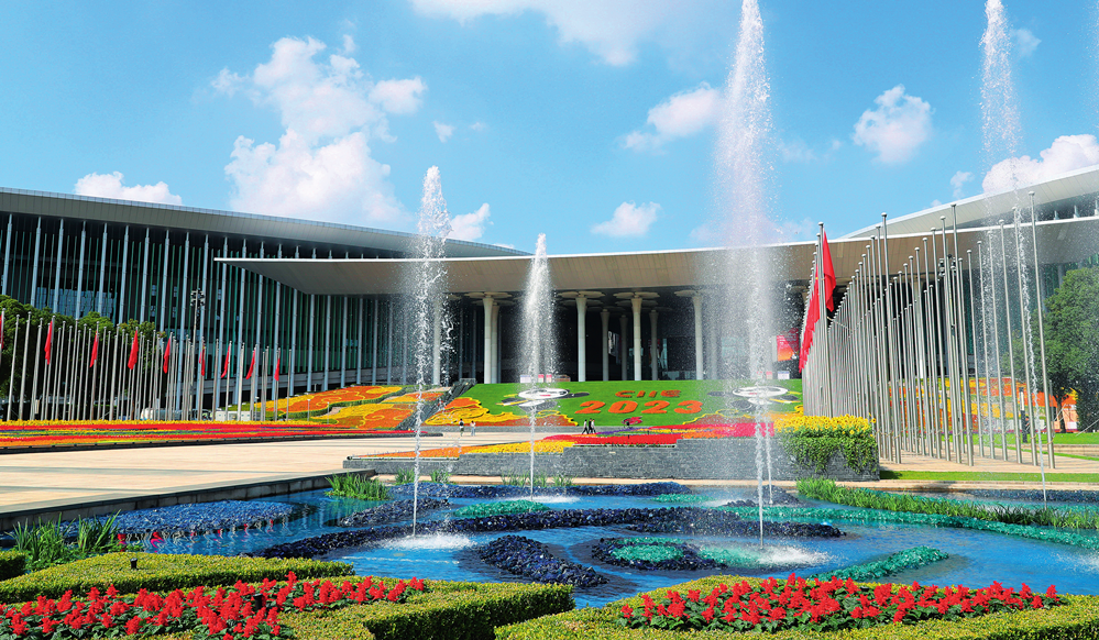 裝飾一新的國(guó)家會(huì)展中心(上海)南廣場(chǎng)(2023 年 10 月 24 日攝)方喆攝 / 本刊
