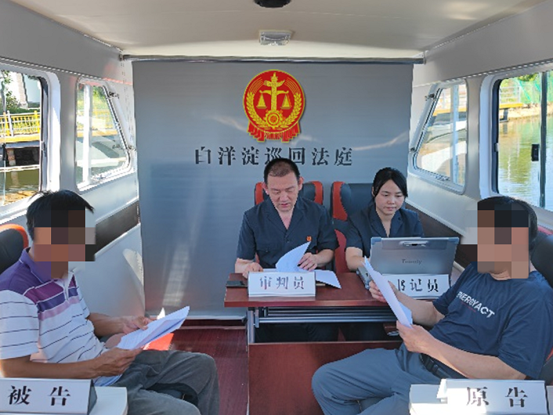 “水區(qū)群眾、游客出行、游覽基本靠船只往來,遇有糾紛到法院訴訟很是不便,水區(qū)群眾立一件案件、開一次庭或者拿一份調解書都需要乘船到縣城再乘車到法院,來回一次可能都需要一天的時間?!卑残驴h人民法院白洋淀人民法庭庭長張林杰說。2016年,白洋淀人民法庭應運而生。