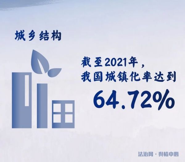 從城鄉(xiāng)結(jié)構(gòu)來看,1982年,我國是一個農(nóng)村人口占總?cè)丝?0%的典型農(nóng)業(yè)型國家。此后,通過不斷健全各項制度,多舉措改革創(chuàng)新,提高社會流動性,使得中國社會走上了城市化發(fā)展道路,城市活力得到了進(jìn)一步釋放。我國實現(xiàn)了從落后的鄉(xiāng)村型社會向富足的城鄉(xiāng)融合型社會轉(zhuǎn)變。截至2021年,我國城鎮(zhèn)化率達(dá)到了64.72%。