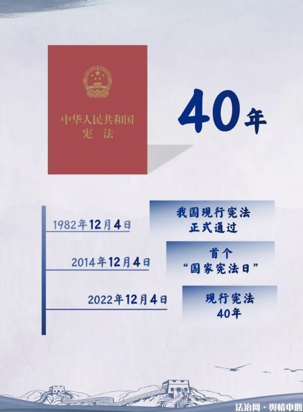 1982年12月,第五屆全國人民代表大會第五次會議審議通過了憲法修正案草案,現(xiàn)行憲法正式誕生。如今,現(xiàn)行憲法已實施四十年。四十年間,隨著法治建設(shè)的不斷推進(jìn),憲法的地位顯得尤為重要。我國在2014年12月4日設(shè)立了“國家憲法日”,旨在增強(qiáng)憲法意識,弘揚(yáng)憲法精神。