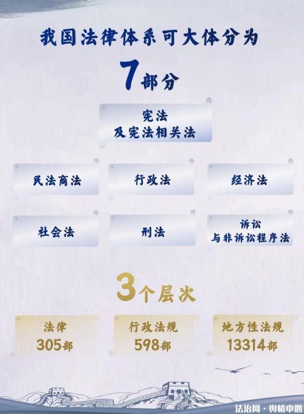 憲法具有高的法律效力,是法律法規(guī)和制度體系的源頭。我國的法律體系是由憲法統(tǒng)領(lǐng)下的各法律部分構(gòu)成。據(jù)國家法律法規(guī)數(shù)據(jù)庫查詢數(shù)據(jù),截至2022年10月30日,我國現(xiàn)行有效的法律有305部,行政法規(guī)598部,地方性法規(guī)13314部。在以憲法為總依據(jù)的前提下,我國法律數(shù)量不斷增加,立法機(jī)制也在不斷完善。