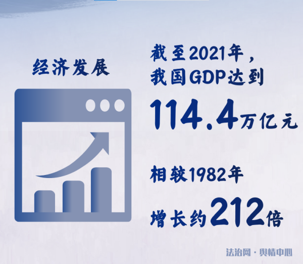從經(jīng)濟(jì)發(fā)展來看,憲法直接或間接保障經(jīng)濟(jì)制度,通過監(jiān)督手段不斷調(diào)整社會經(jīng)濟(jì)制度的結(jié)構(gòu),實行社會生產(chǎn)方式與生產(chǎn)力的最佳結(jié)合。我國實現(xiàn)了封閉型經(jīng)濟(jì)弱國向開放型全球經(jīng)濟(jì)大國的轉(zhuǎn)變,國民生產(chǎn)總值從1982年的5373億元躍升到2021年的114.4萬億元,增長了約212倍。