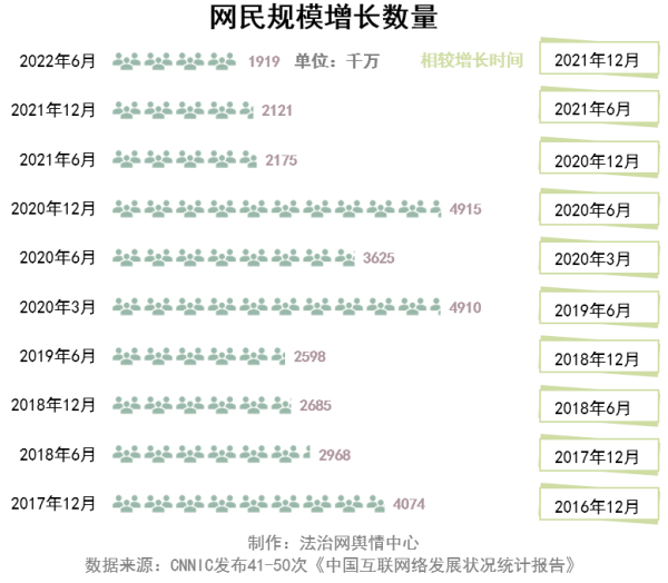 第50次《報(bào)告》顯示,2022年6月相較于2021年12月新增網(wǎng)民1919萬人。