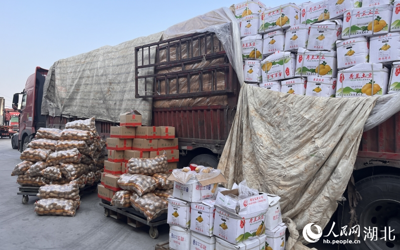1月27日,冬日暖陽高照,位于湖北省孝感市孝南區(qū)的華中國際食品產(chǎn)業(yè)新城首衡城人頭攢動、熱鬧非凡。運(yùn)送蔬菜水果的車輛絡(luò)繹不絕,商戶忙著洽談、裝卸,打年貨的市民在各個展示攤位品嘗、采買。