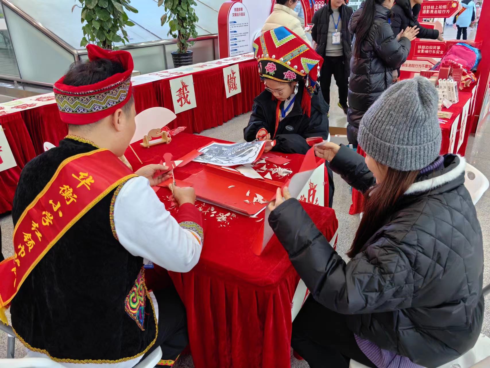 活動當(dāng)天,平安廣西護(hù)路辦開展“知路愛路護(hù)路?共建平安鐵路”宣傳活動?;顒蝇F(xiàn)場,崇左市愛路護(hù)路天琴演奏團(tuán)現(xiàn)場演奏樂曲《護(hù)路琴謠》;小學(xué)紅領(lǐng)巾護(hù)路隊(duì)通過表演愛路護(hù)路舞蹈《高鐵過瑤山,幸福小把爺》,贏得觀眾的掌聲。同時,小學(xué)紅領(lǐng)巾護(hù)路隊(duì)向旅客們展示非遺項(xiàng)目《交通強(qiáng)國,鐵路先行》主題剪紙,現(xiàn)場旅客駐足觀看并參與其中。