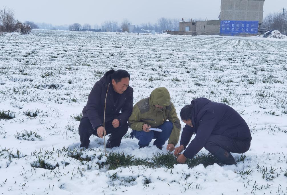 連日來(lái),鳳陽(yáng)縣鄉(xiāng)兩級(jí)220多名農(nóng)技人員活躍在農(nóng)業(yè)生產(chǎn)一線,蹲在田頭、撥開(kāi)覆雪,仔細(xì)查看小麥苗情,提供田管建議。鳳陽(yáng)縣農(nóng)技推廣中心主任徐德明說(shuō),對(duì)于糧油生產(chǎn)來(lái)說(shuō),這場(chǎng)降雪降溫有助于殺滅農(nóng)田中的蟲(chóng)卵,減輕病蟲(chóng)害,有利于小麥越冬生長(zhǎng)。