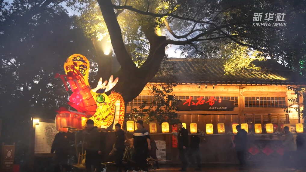 板凳龍燈身長百米,由40多位村民共同舞動?,F(xiàn)場游客隨著龍燈隊伍,走村串戶,沉浸式體驗婺源傳統(tǒng)民俗。
