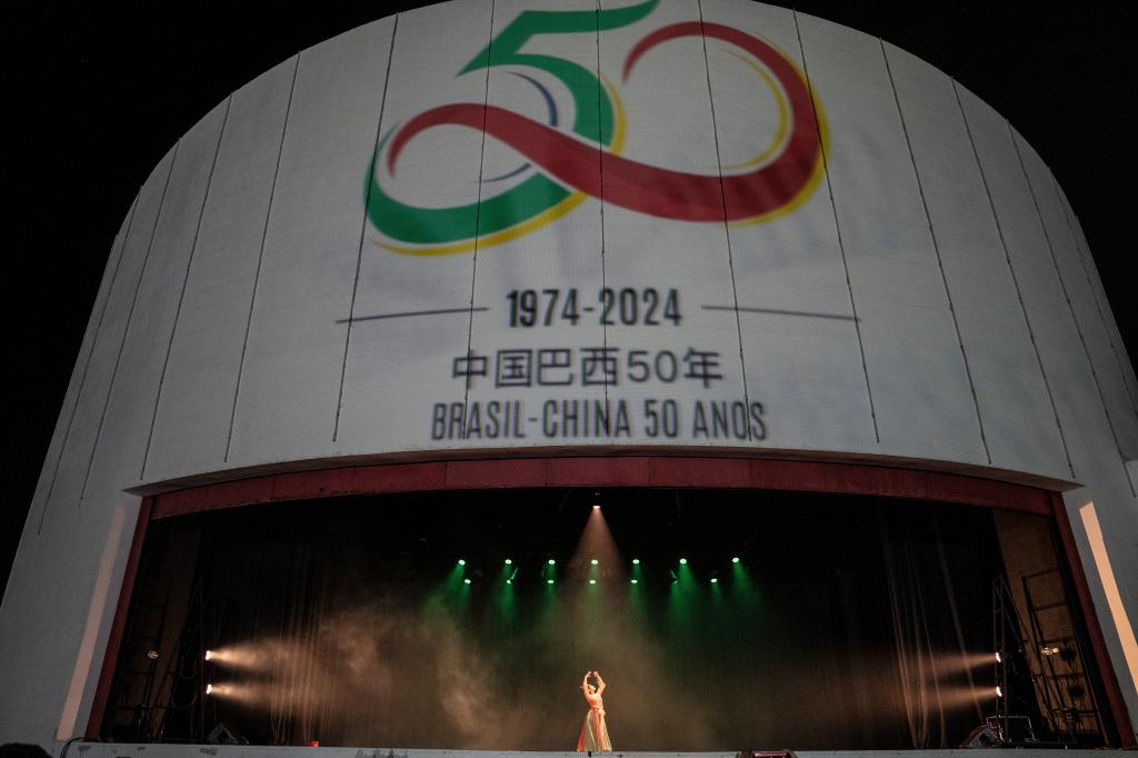 演出過(guò)后,五星紅旗、巴西國(guó)旗依次亮起,中巴建交50周年的標(biāo)識(shí)出現(xiàn)在觀眾們眼前。