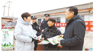 在吆喝、討價還價聲中,《法治日報》記者穿過擁擠的人群,來到一個特殊攤位——“普法宣傳攤”,擺攤的是薊州區(qū)司法局孫各莊司法所、漁山強制隔離戒毒所以及天津市公安局薊州分局孫各莊派出所的工作人員。