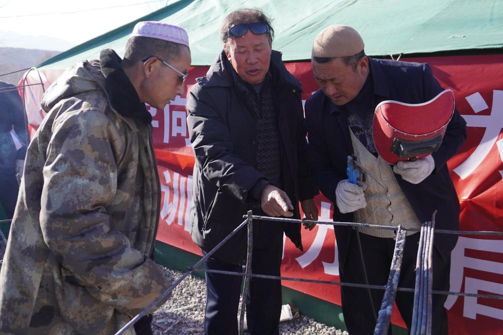 1月16日,在甘肅省臨夏州積石山縣大河家鎮(zhèn)陳家村安置點,群眾參加電焊技能培訓班。新華社記者 馬希平 攝