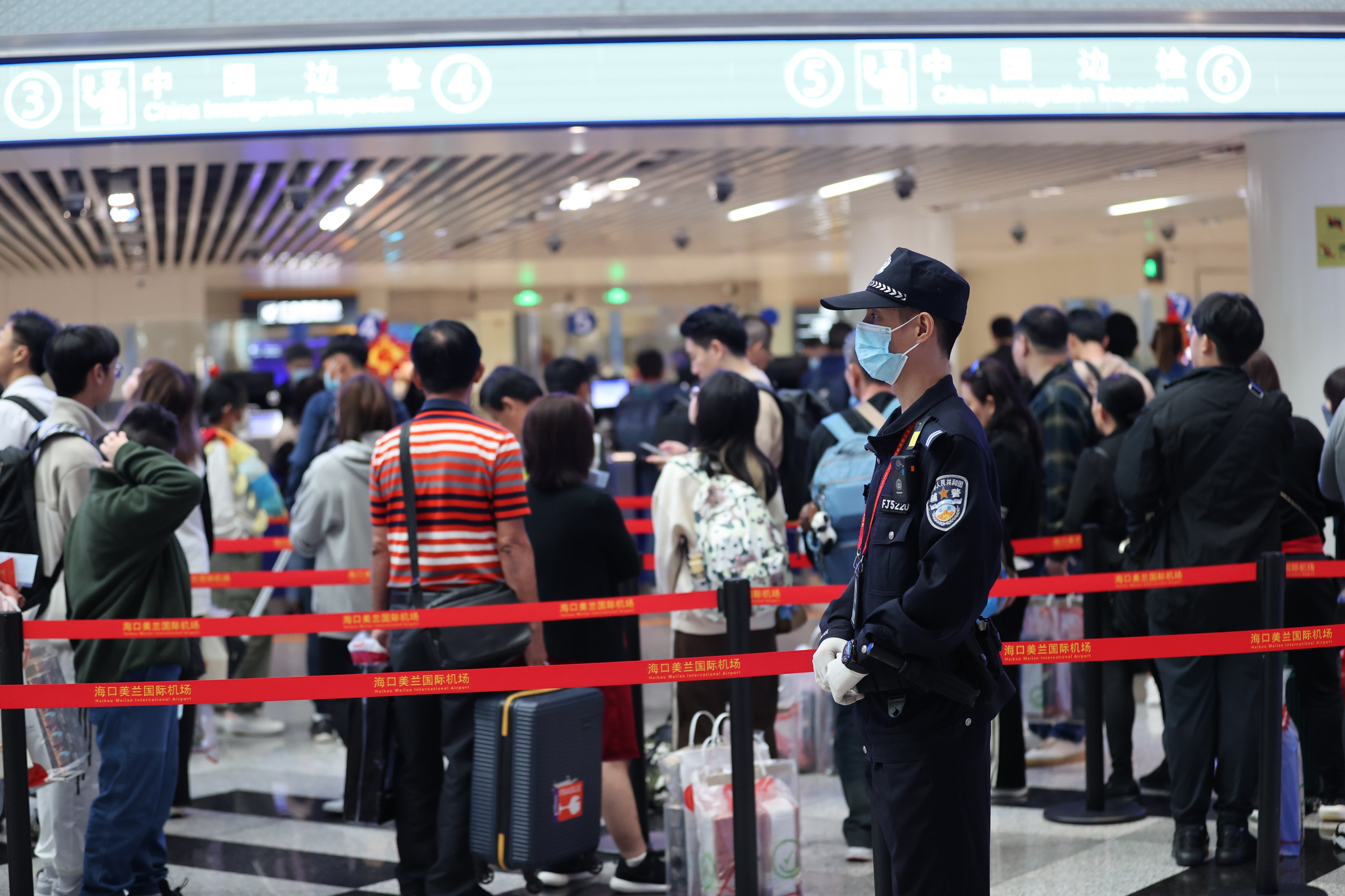 2月10日,正值大年初一。上午10時(shí)許,兩架從新加坡入境海南海口的航班滿載著286名旅客相繼飛抵??诿捞m國際機(jī)場,美蘭出入境邊防檢查站執(zhí)勤四隊(duì)的執(zhí)勤民警又開始忙碌起來。