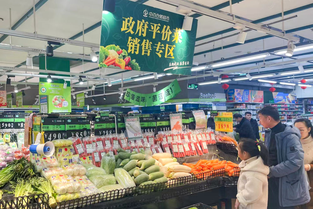 為積極應(yīng)對(duì)近期雨雪冰凍天氣影響,確保武漢市春節(jié)期間蔬菜市場(chǎng)價(jià)格平穩(wěn),保障市民基本生活需求,2月8日至2月12日期間,武漢市政府部署在武商、中百、中商三大商超130余家門(mén)店設(shè)置政府平價(jià)菜銷(xiāo)售專區(qū),銷(xiāo)售大白菜、包菜、白蘿卜、胡蘿卜、土豆5種蔬菜。