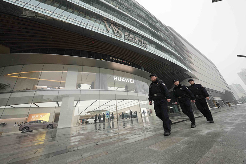 圖為湖北省武漢市公安局武昌區(qū)分局梅苑派出所民警正在武商夢時(shí)代廣場外圍開展步巡。孫遜/攝