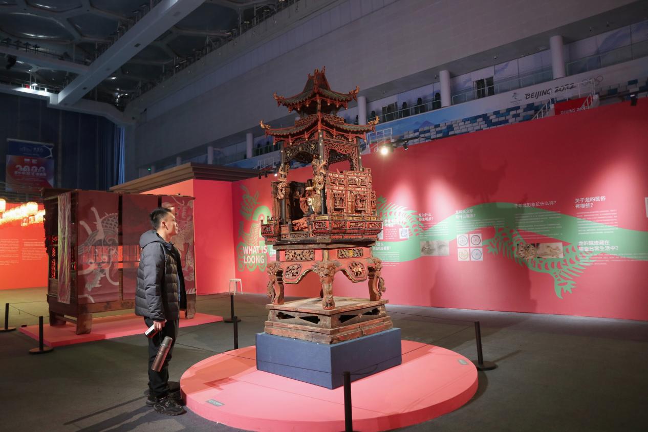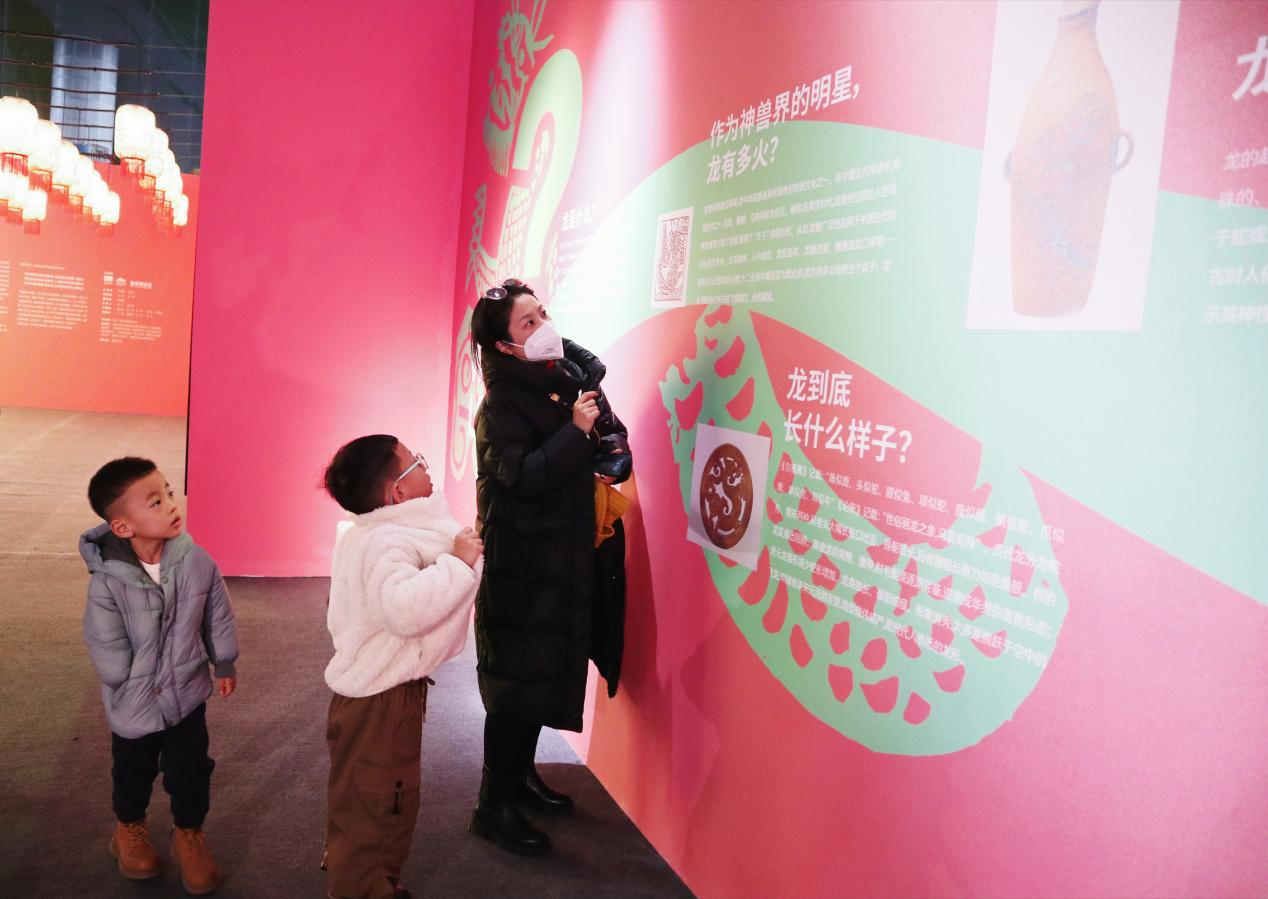 “此次呈現(xiàn)的龍與以往看到的莊重威嚴(yán)的龍不太一樣,從服飾到杯盞再到小小的裝飾品,龍的形象好像融入了百姓的日常生活,變得更加和藹可親?!睆慕K帶家人來北京過年的陳女士深有感觸。