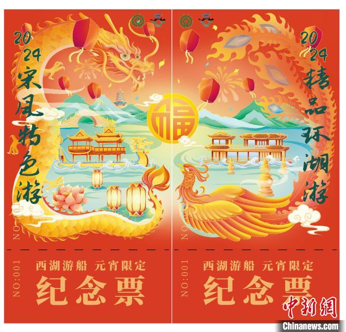 龍和鳳自古就是中華民族的圖騰和象征,為古代傳說中的動物,在中國歷史上具有吉祥之意。此次發(fā)行的元宵版限定船票共計376份,整體設計以西湖民間故事“龍飛鳳舞到錢塘”為寓意背景,“龍”“鳳”圖案為主要元素,將西湖游船兩艘大型畫舫——南宋御舟荃橈號“龍船”和智慧畫舫玉津舫“鳳船”,與象征著祈愿和祝福的中國傳統(tǒng)“手工燈”“孔明燈”、西湖美景等圖案巧妙結(jié)合。