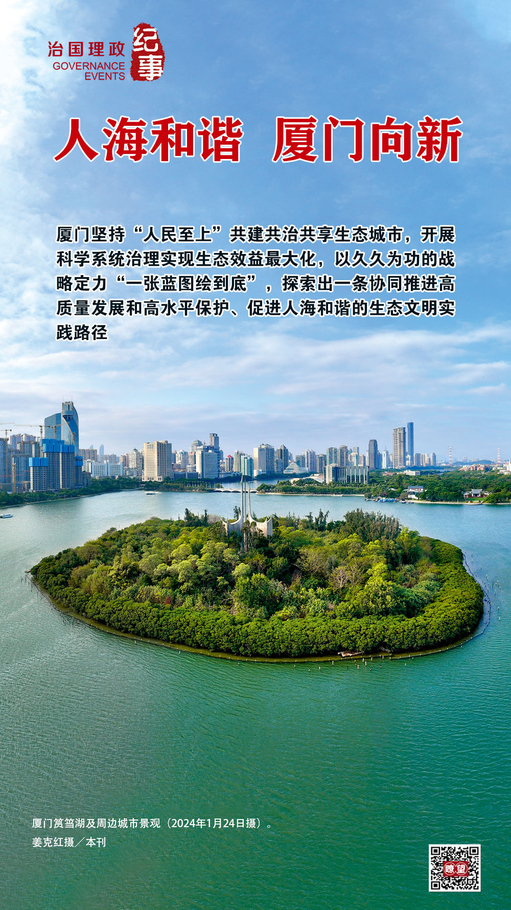 從習(xí)近平同志親自謀劃、親自部署、親自推動的筼筜湖綜合治理出發(fā),廈門堅持“人民至上”共建共治共享生態(tài)城市,開展科學(xué)系統(tǒng)治理實(shí)現(xiàn)生態(tài)效益最大化,以久久為功的戰(zhàn)略定力“一張藍(lán)圖繪到底”,探索出一條協(xié)同推進(jìn)高質(zhì)量發(fā)展和高水平保護(hù)、促進(jìn)人海和諧的生態(tài)文明實(shí)踐路徑。