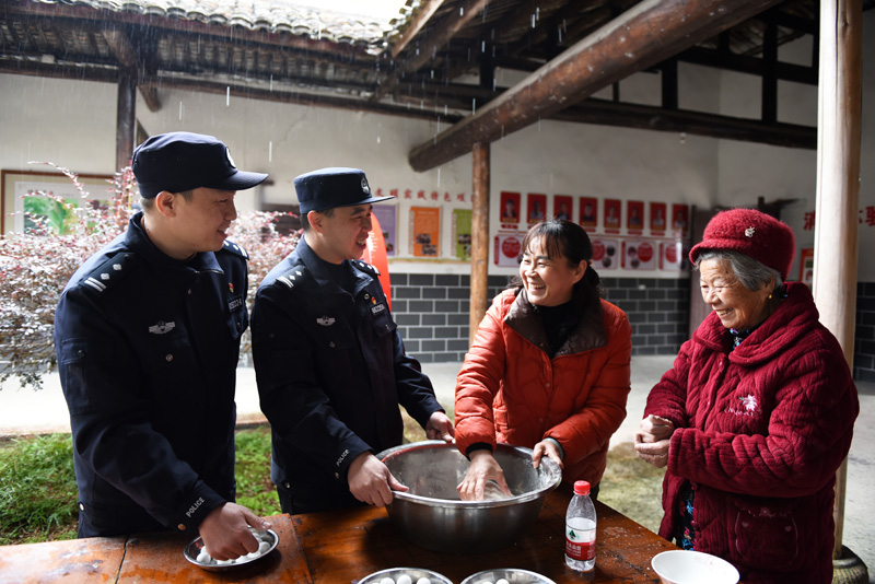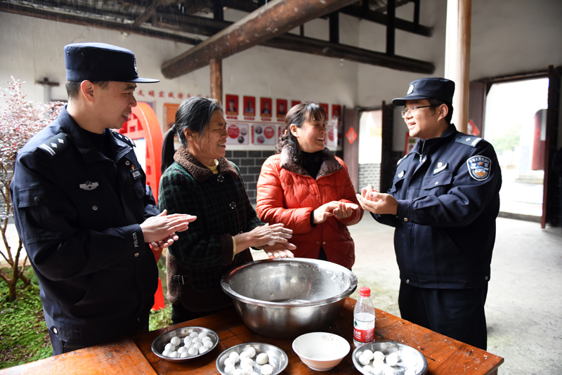 元宵節(jié)前夕,江西省分宜縣公安局組織社區(qū)民警走進(jìn)轄區(qū)開(kāi)展“警民慶元宵 情暖夕陽(yáng)紅”主題關(guān)愛(ài)活動(dòng)。民警和老人們一起動(dòng)手包湯圓、聊家常,暢談元宵習(xí)俗趣事,宣傳防火、防盜、防詐騙等安全防范常識(shí),讓群眾感受到濃濃的團(tuán)圓之情。圖為民警與轄區(qū)老人一起包湯圓話安全,共迎元宵佳節(jié)。
