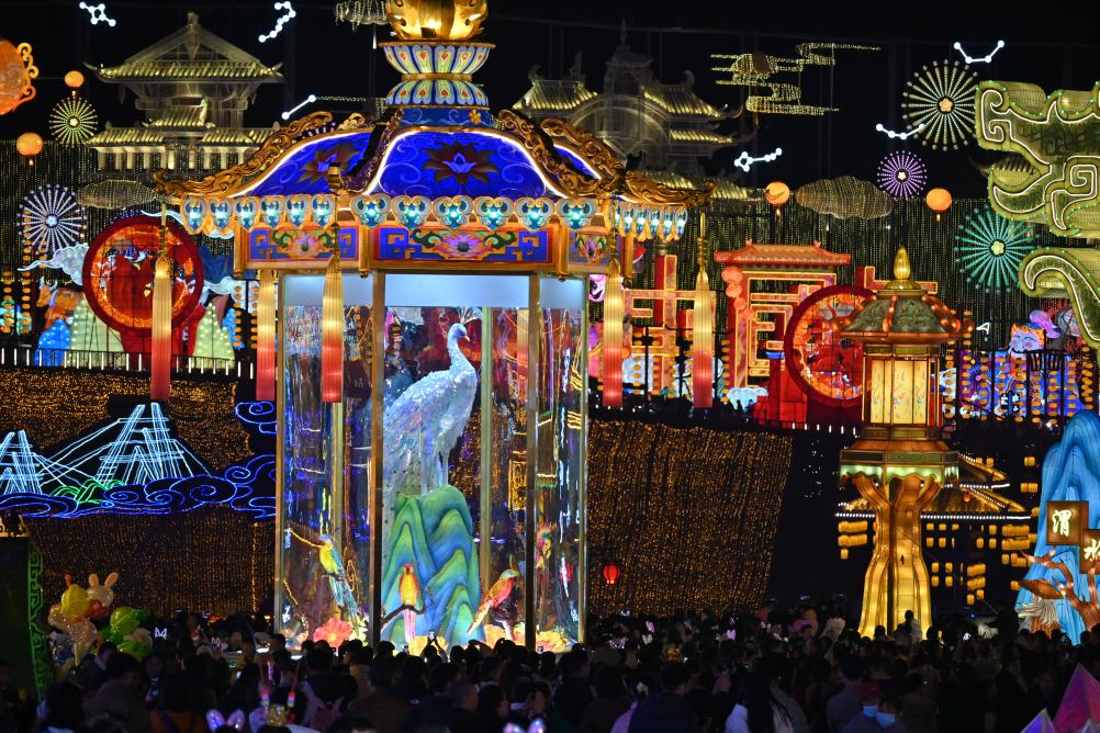 在四川自貢,3萬多名游客走進(jìn)“中國燈城”自貢中華彩燈大世界,觀彩燈、賞演藝、拍全家福??罩校?00架無人機排列出湯圓、舞龍燈等圖樣;地面,舞龍舞獅等民俗表演輪番上演,上百名身著漢服的演員手提花燈巡游……